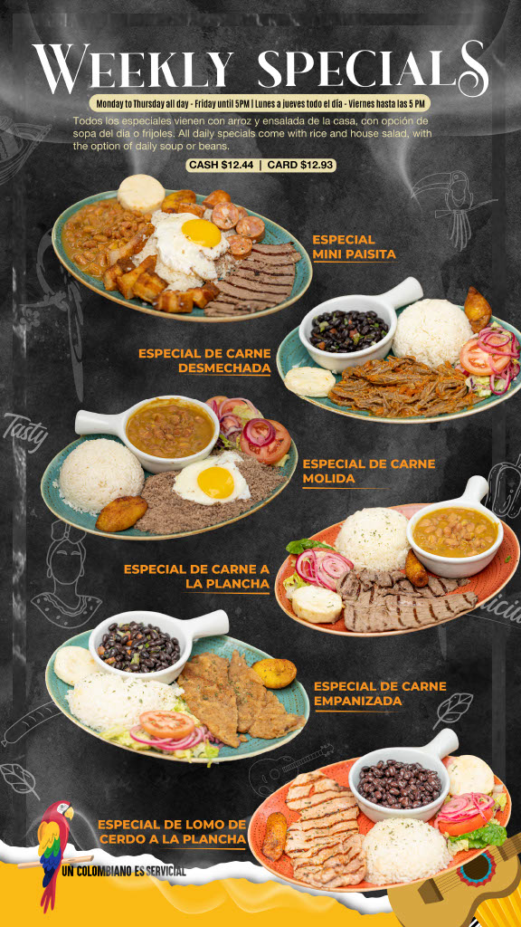 The arepas stand out as a signature offering. From the flavorful Arepa Paisa to the enticing Arepa Frita Con Churrasco, these corn cakes come topped with various meats, making each bite a celebration of Colombian cuisine. For those visiting on a Sunday, don’t miss the delicious Sancocho de Cola, a hearty oxtail soup cherished by locals.